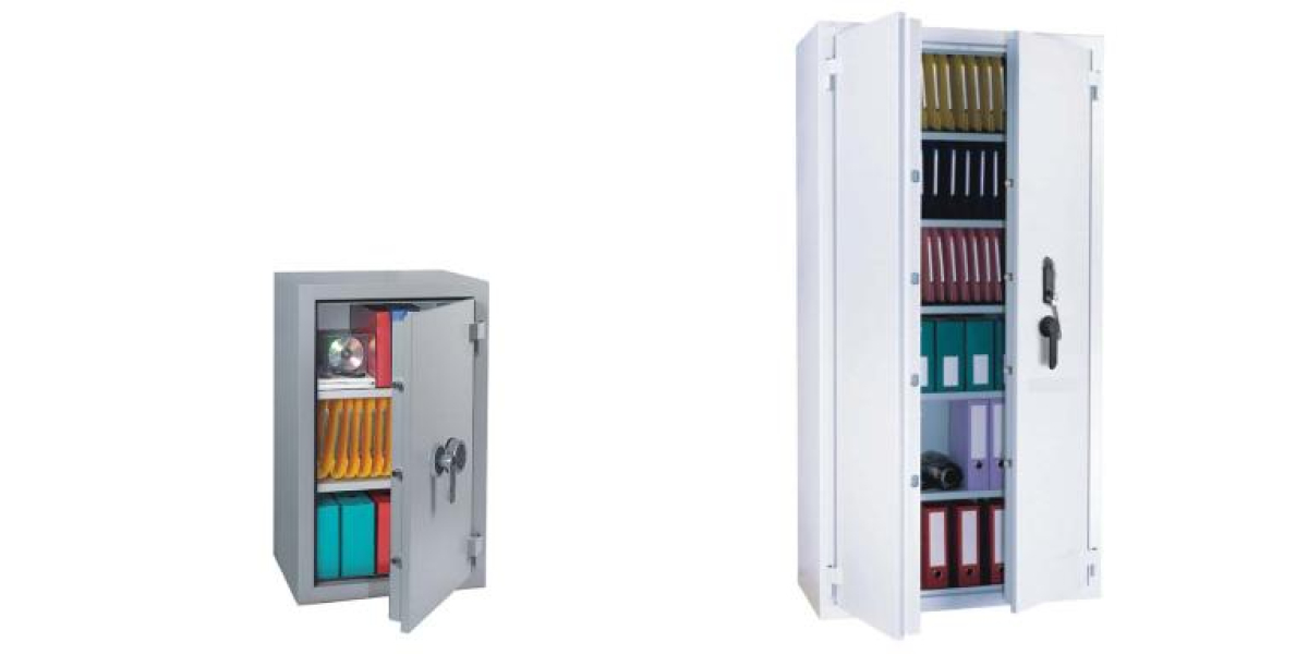 **Les armoires coupe-feu offrent une protection contre le feu grâce à leur conception qui ralentit la montée en température à l’intérieur de l’armoire : isolant thermiqiue et joint intumescent étanche. La serrure de haute sécurité est protégée par un blindage en manganèse.