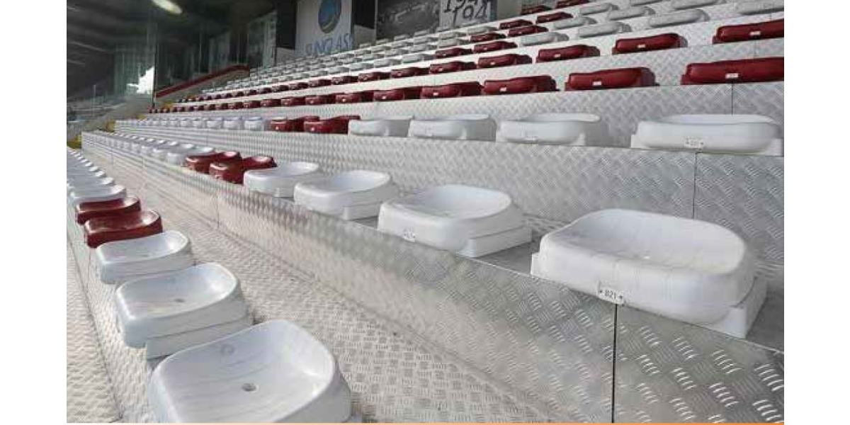 sièges VIP, tables commentateurs, table de presse lounge pour VIP, places pour accompagnateurs de spectateurs à mobilité réduite