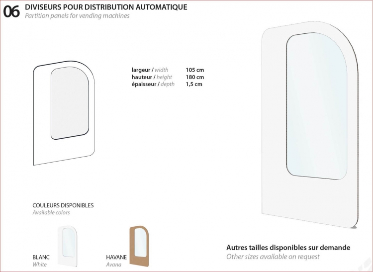 séparateurs écologiques semi transparents, cloisons pour distributeurs automatiques de cafés, boissons, et tout autre produits hygiène, barres chocolatées ou sandwichs , créant la barrière nécessaire pour protéger les utilisateurs stationnant devant chacune des machines.