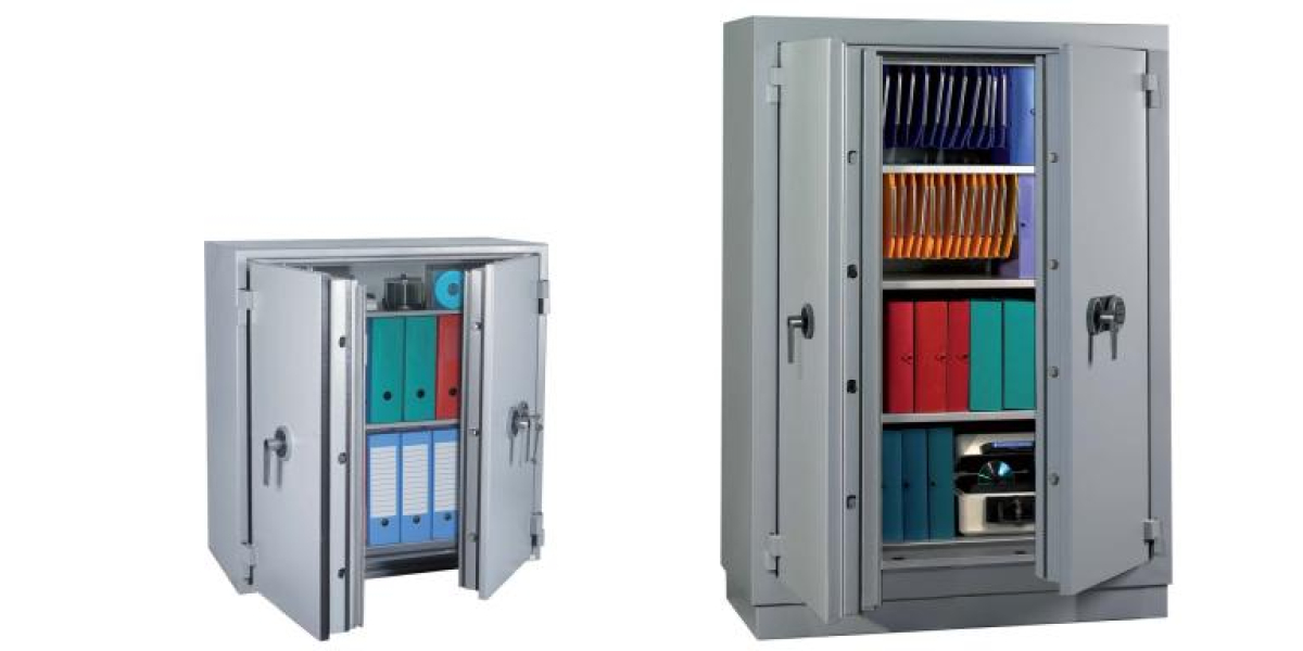 Ces armoires tout acier et constituées de matériaux ignifugés, réfractaires et blindés ont fait l’objet de tests d’endurance au feu, au choc thermqiue et à l’impact.