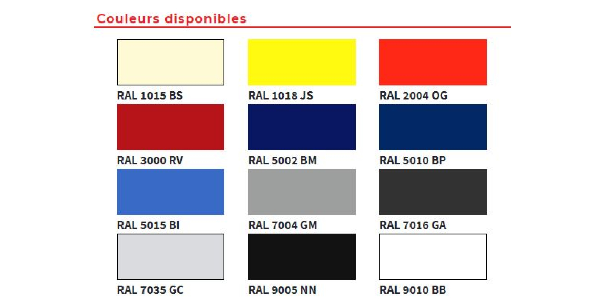 La finition de la structure est réalisée par une peinture en poudre époxy polymérisée au four à 180°C.