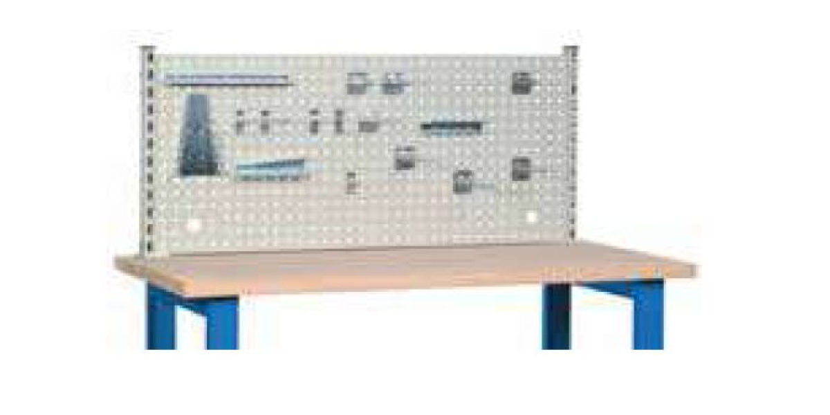 Les montants arrière, de hauteurs 1200 mm, 1650 mm ou 1950 mm, sont fixes et accueillent les accessoires modulaires tels que tablettes, rails, support éclairage fixés sur les perforations. Ils sont au nombre de 2 sur les postes largeur 695 et 925 mm, de 2 ou 3, au choix, sur la largeur 1360 mm et de 3 sur la largeur 1820 mm. La configuration à 3 montants permet d’accueillir de manière indépendante 2 ensembles d’accessoires.