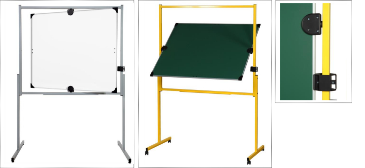 Cette page regroupe deux modèles de tableaux scolaires pivotants, conçus pour répondre aux besoins des établissements d’enseignement et des espaces pédagogiques exigeants. Grâce à leur système de rotation, ces tableaux offrent deux faces d’écriture exploitables, permettant d’optimiser l’espace et de multiplier les surfaces disponibles sans augmenter l’encombrement au sol.